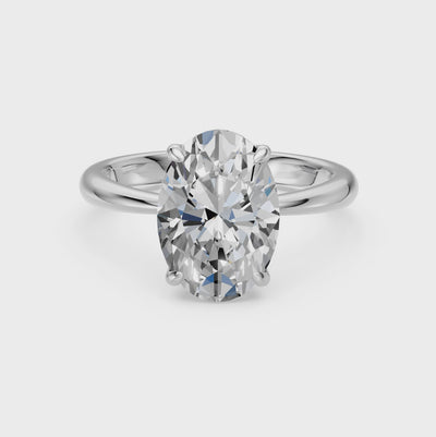 Visual Draw: The band gently narrows as it approaches the diamond, creating a "pinched" effect that draws the eye directly to the center stone, making the 4-carat oval appear even more substantial.